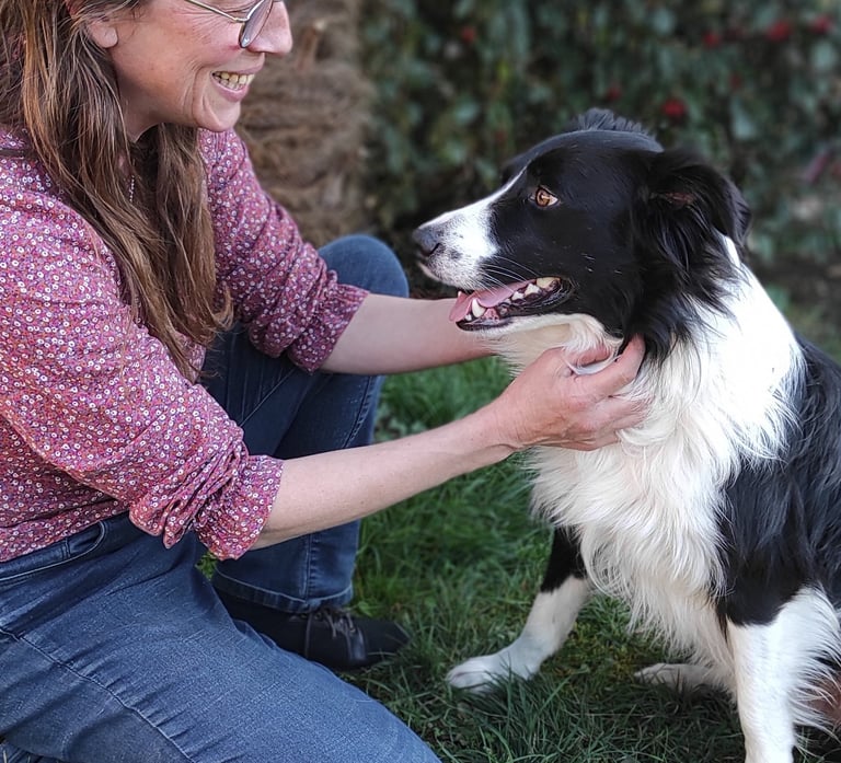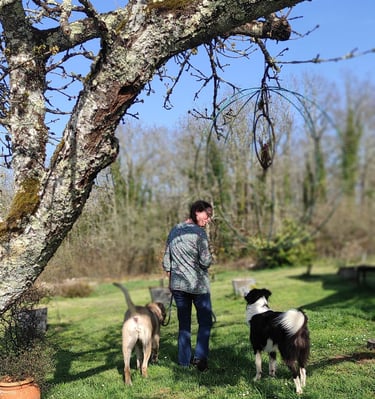 J’ai pris le temps de me former avec Zoo pro et de passer le certificat de l’ACACED obligatoire en France. Mais tout ce que j’enseigne vient de ce que j’ai appris à l’école de Scott en Belgique, qui est pour moi une grande référence au niveau de l'éducation canine. Pour ce qui est de la pratique, je m’appuie sur mon expérience de responsable et de famille d’accueil à l’association Borderlinecollie qui récupère des borders collie abandonnés. Soutenir et conseiller des familles d’accueil qui se retrouvent avec des chiens craintifs, ou non propres, ou hyperactifs, ou réactifs, ou angoissés par la solitude, etc.. et une grande expérience qui m'oblige à une formation continue. Etre aussi famille d’accueil de chiens avec toutes sortes de problématiques est aussi une grande richesse pour moi en tant qu’éducateur comportementaliste. Cela me garde humble et fait grandir ma ténacité, car les difficultés ne nous permettent pas nous reposer sur nos acquis…