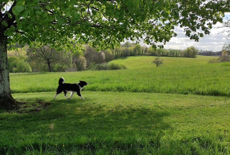 Je dois avouer que je ne serai pas la seule à vous accueillir dans mon petit havre de verdure…, Willow mon fidèle border collie et Milou mon amour de chat (qui se prend souvent pour un chien) sont de la partie pour l’accueil et le travail d’éducation des Toutous qui passent par ici.