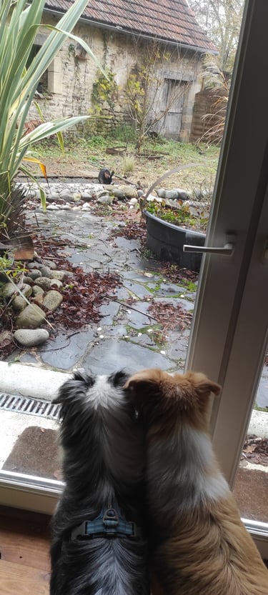 -Votre toutou sera accueilli chez moi avec un maximum de cinq autres chiens pour garder la dimension familiale. Sur place des animaux sont déjà présents : chat, chien, poules et lapins.