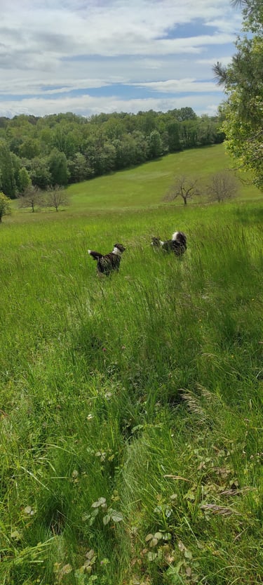 -Votre chien pourra profiter du parc clôturé (à 1.20m), des copains, de temps de jeux, des trois balades en pleine nature si vous le souhaitez (en libre ou avec sa longe), et de temps de repos aussi.